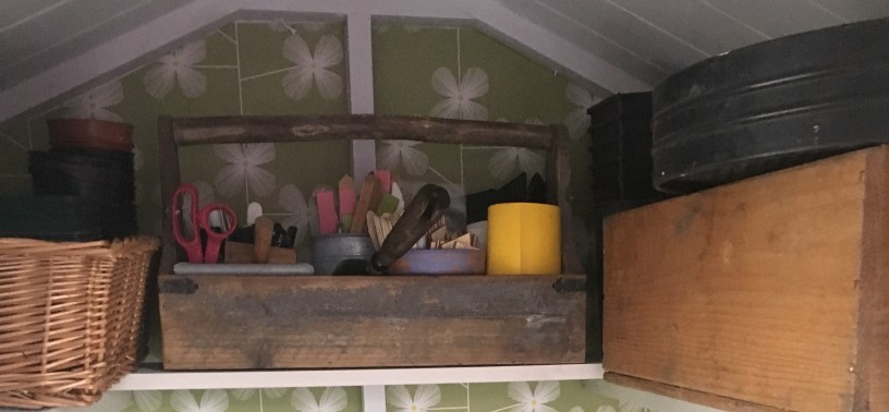 This time, I turned my attention to purple shed’s interior, which really did need some attention. My plan for the shed was to turn it into a small but functional potting shed, for the times when the greenhouse is too hot or the outside too wet or windy.