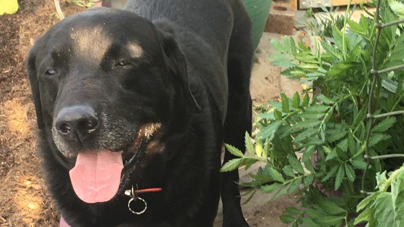 Meet the Billy the Labrador and under-gardener. He’s ten this year and has always come to the plot with me. He likes to go off for a bit of a wander, a sniff and general perimeter patrol, he may then find somewhere shady to sit where he can keep an eye on me.