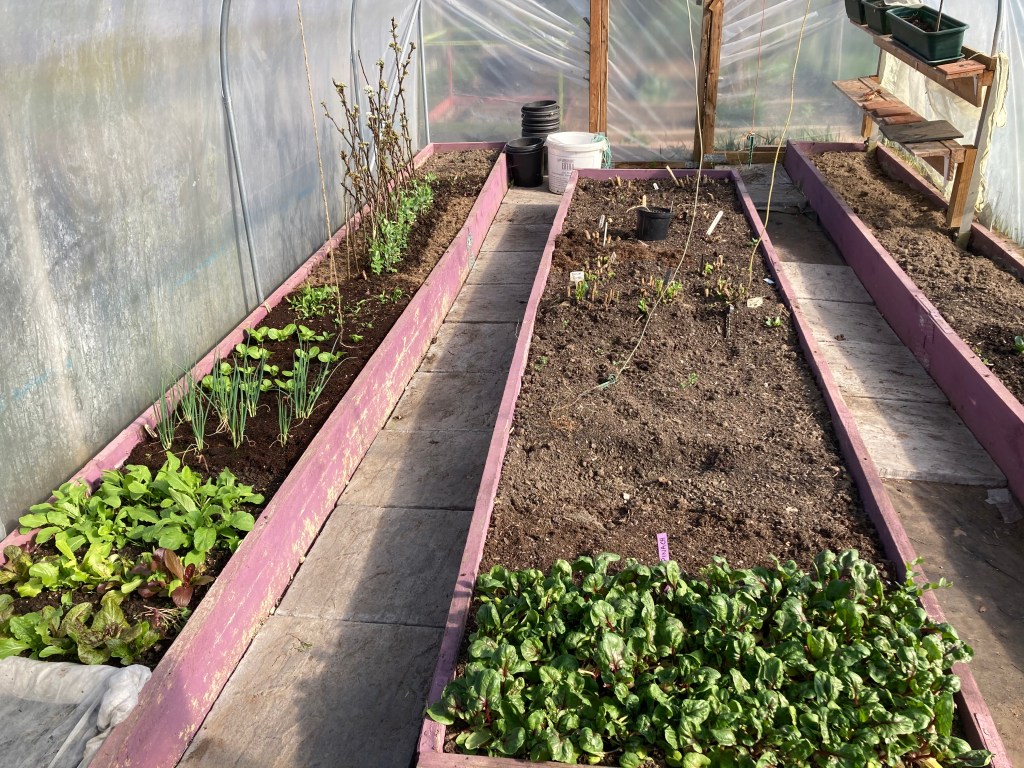 Staying in the polytunnel, things are starting to take off and it is looking more productive with lettuce, rocket, spring onions, spinach and beetroot as well as peas and broad beans.