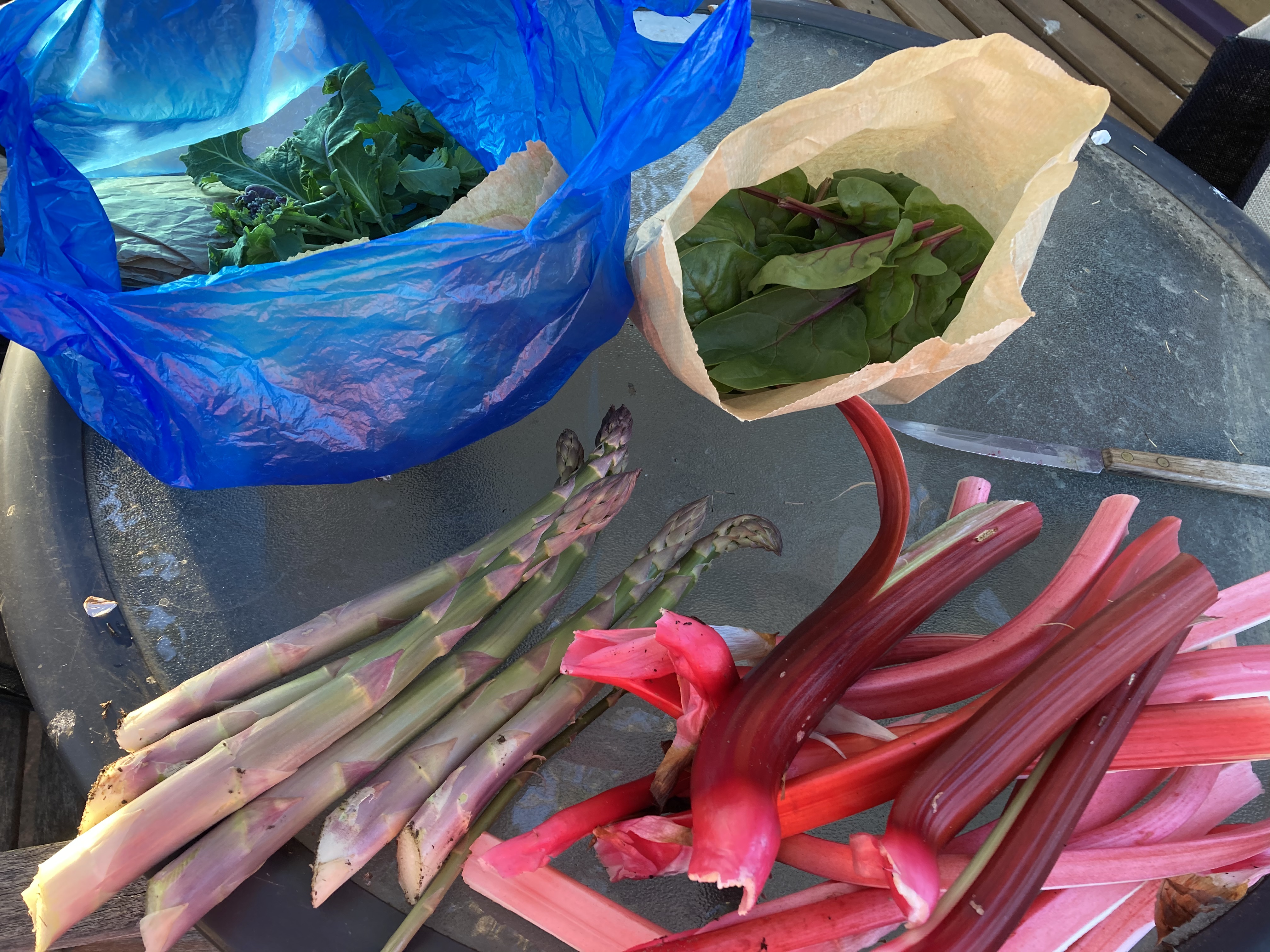It is June 25th here in western WA and I’ve been harvesting blue giant Kale, snow peas, cilantro and other herb. I have turned into a huge Kale fan because it’s so easy to grow, very sturdy, and delicious. I can’t wait for rhubarb and asparagus like you… my plants are new this year. I may get some rhubarb but it’s still looking pretty small.