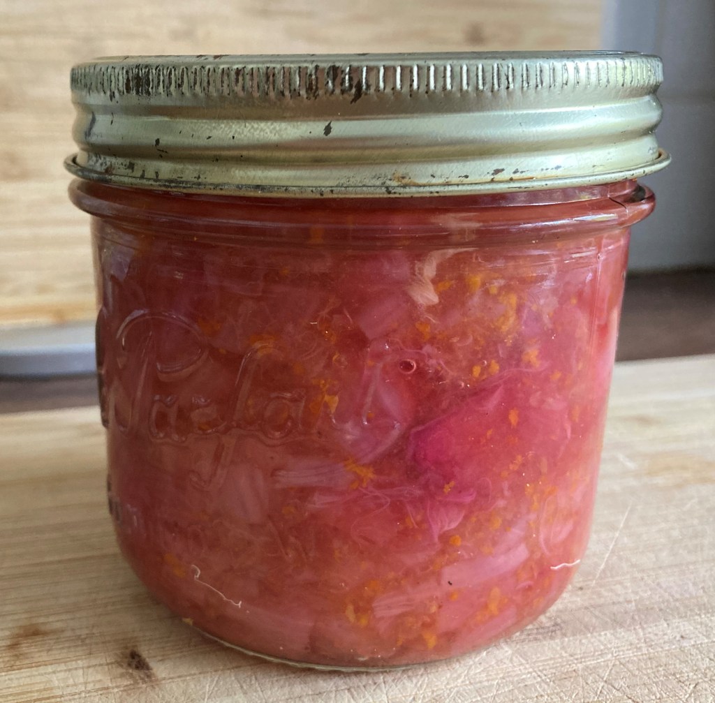 The rhuburb is ‘Fulton’s strawberry surprise’ I have three crowns and rotate which one gets forced and then it has a two year rest. I make rhubarb compote with ginger and orange – yummy with yoghurt and granola. This variety keeps it’s pink colour and looks very pretty in the jar.