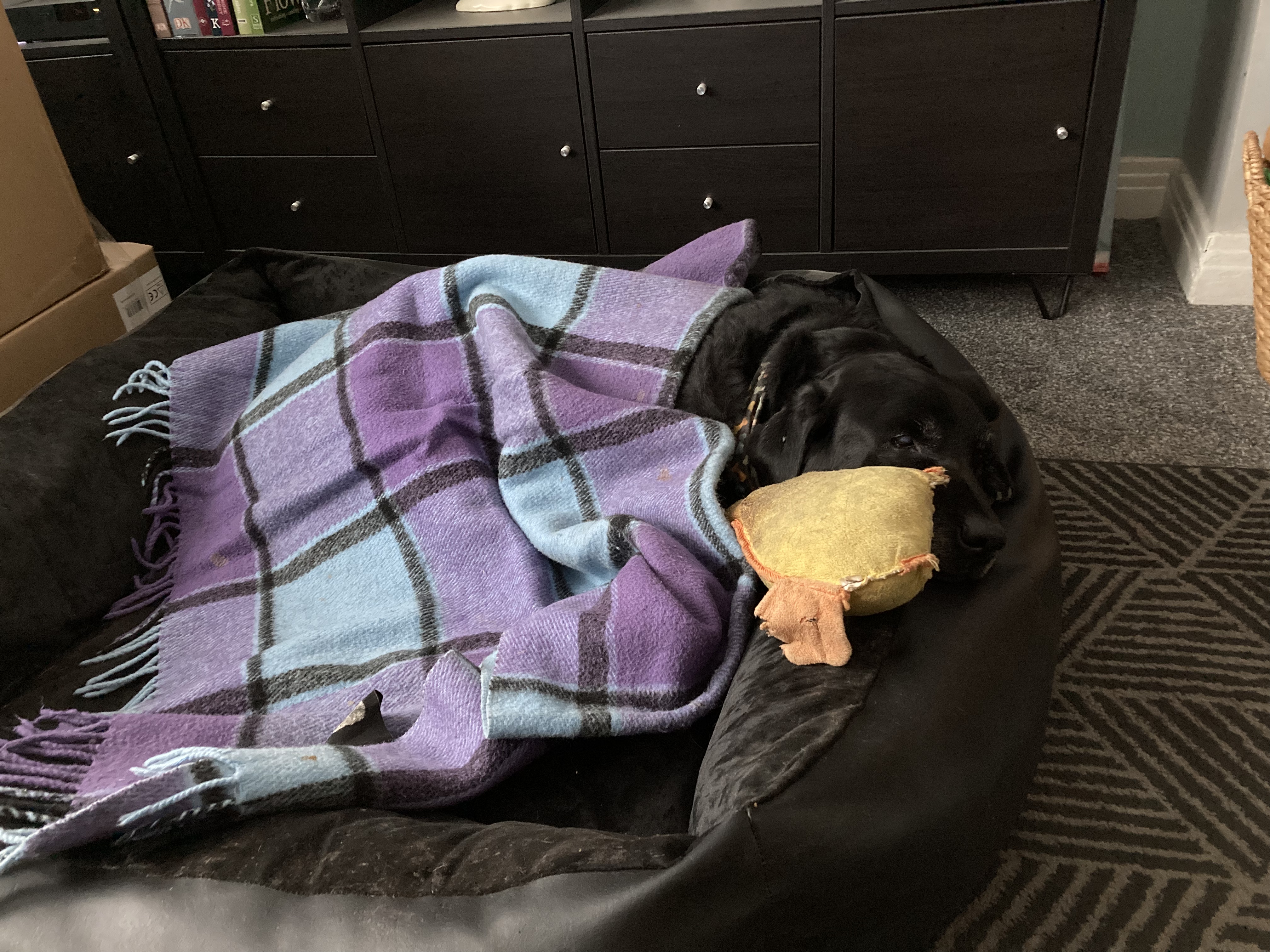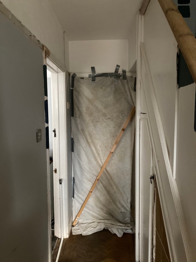 Billy retreated to his bed. Once the builders left for the day, I got busy with gaffer tape to block up the kitchen door – it felt like an improvement.