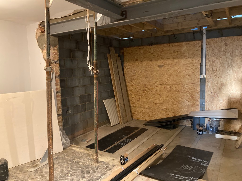 Yesterday the kitchen was ripped out so the ‘baby’ beam could go in and this is the result.