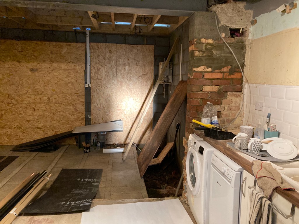 This week has been about taking down walls, including the back of the house and blocking up others. The V thingy drain has been connected and Thames Water are happy and if they’re happy so is building control – so joy all round.