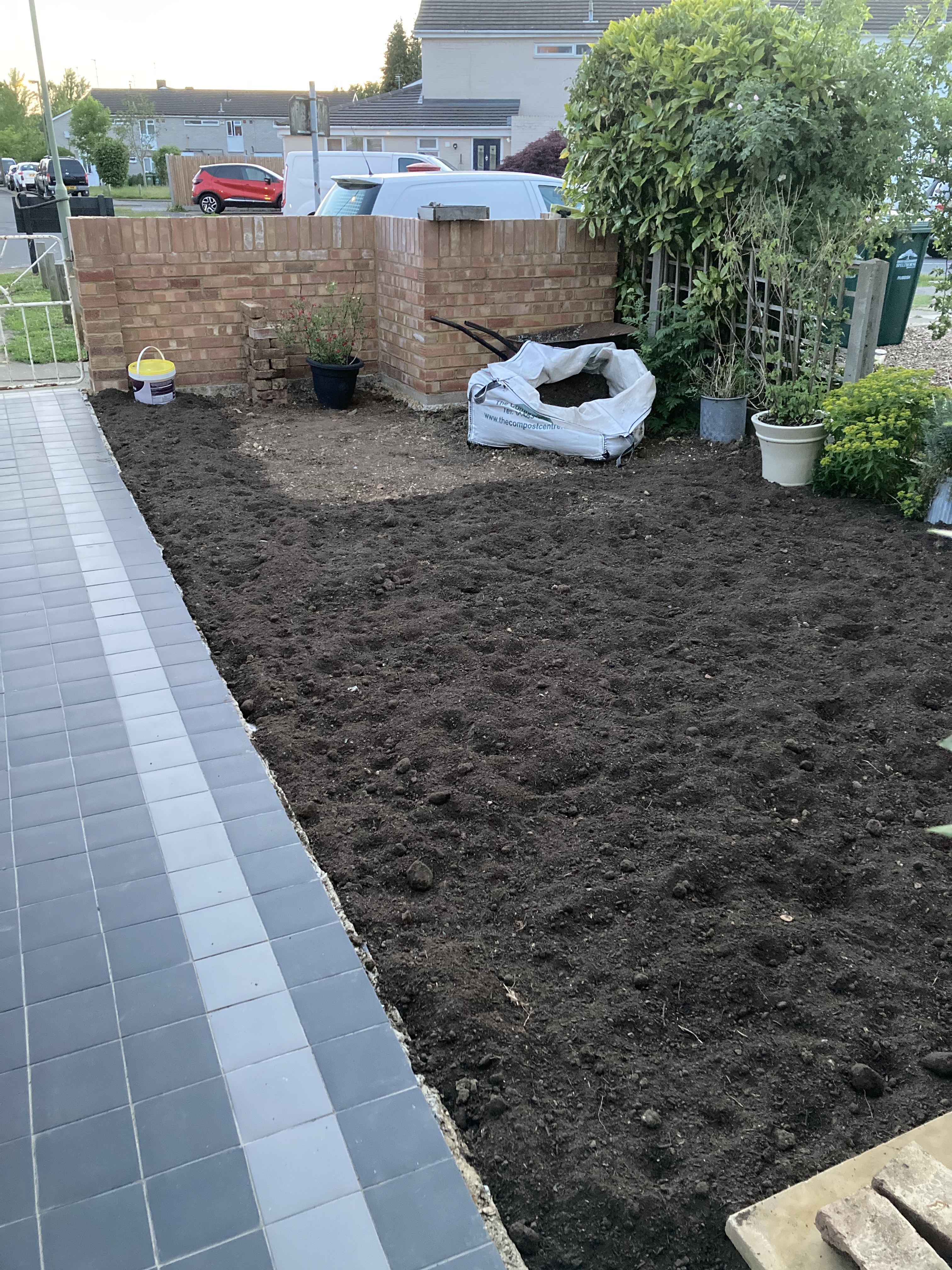 Judging by the number of paw prints in the new top soil, the local cats approve – let’s hope they don’t mistake it for their potty!!