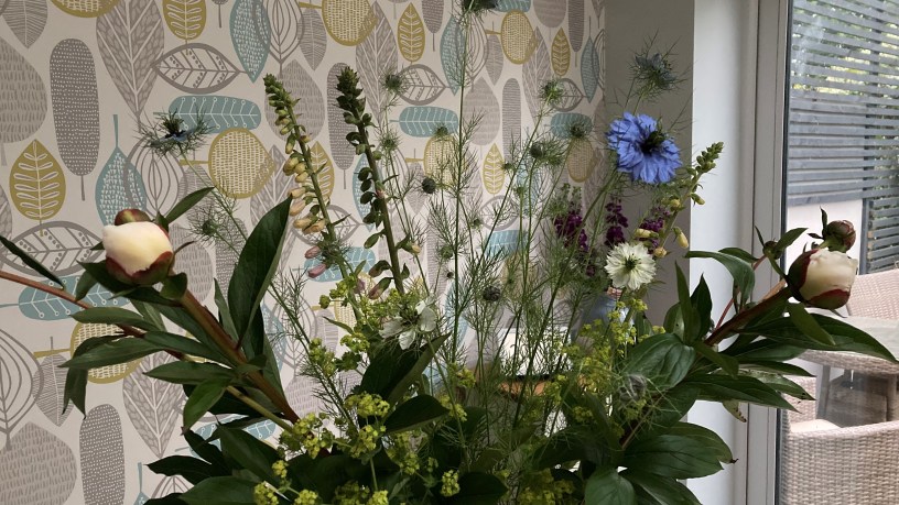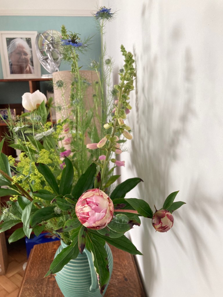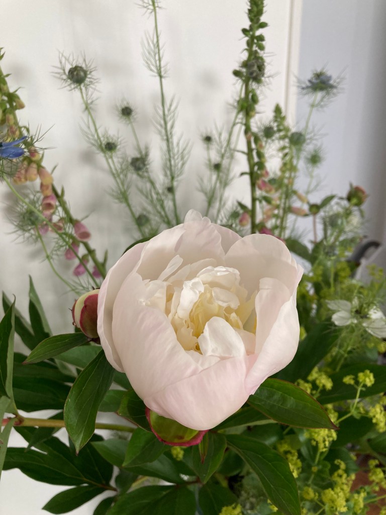 I have to confess this vase was collected and arranged last Wednesday – when the peonies are ready, they don’t wait!