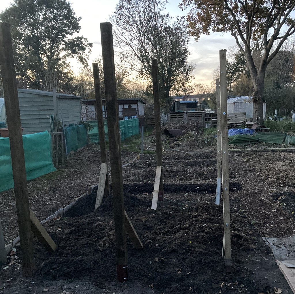 The last few weeks at the new plot have been about structures: sheds, posts and paving.