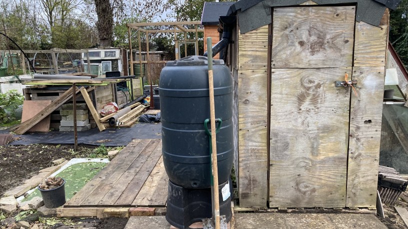You can see in the orange shot, the pond-side decking has been laid and the water barrel set up. Just need to add guttering on the new tool shed and connect it to the IBC tank. The things I do for fresh blueberries!