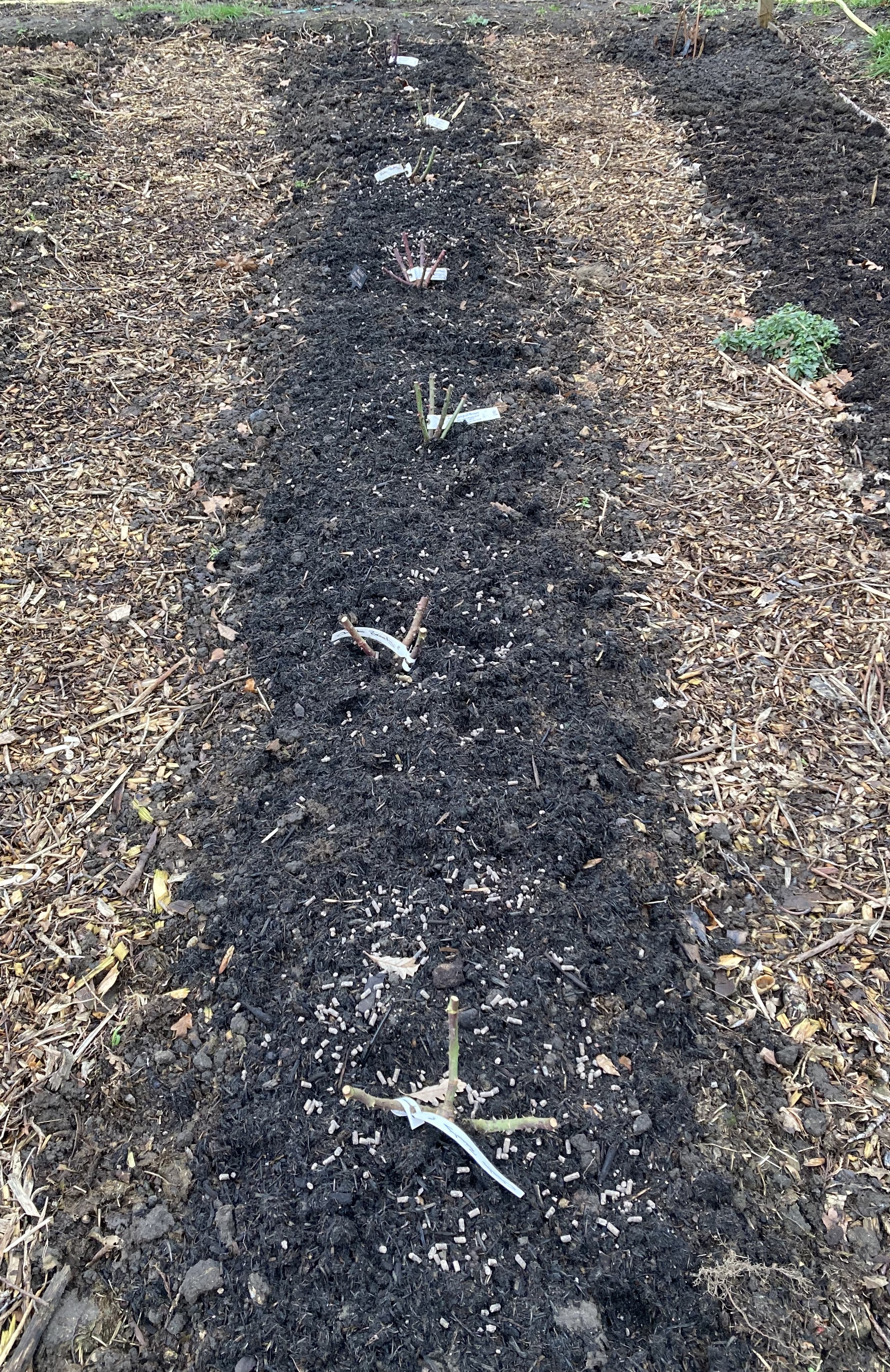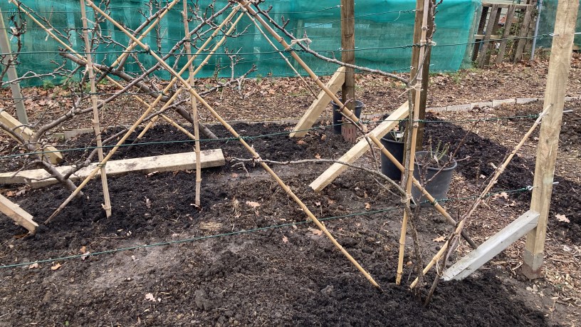 I won’t leave any fruit to develop on the trees next year to give the roots a fighting chance to establish. I’m still apologising to Beth, the tree closest to the path with the green netting, for her brutal removal in the hope of seeing green shoots in the next few months.