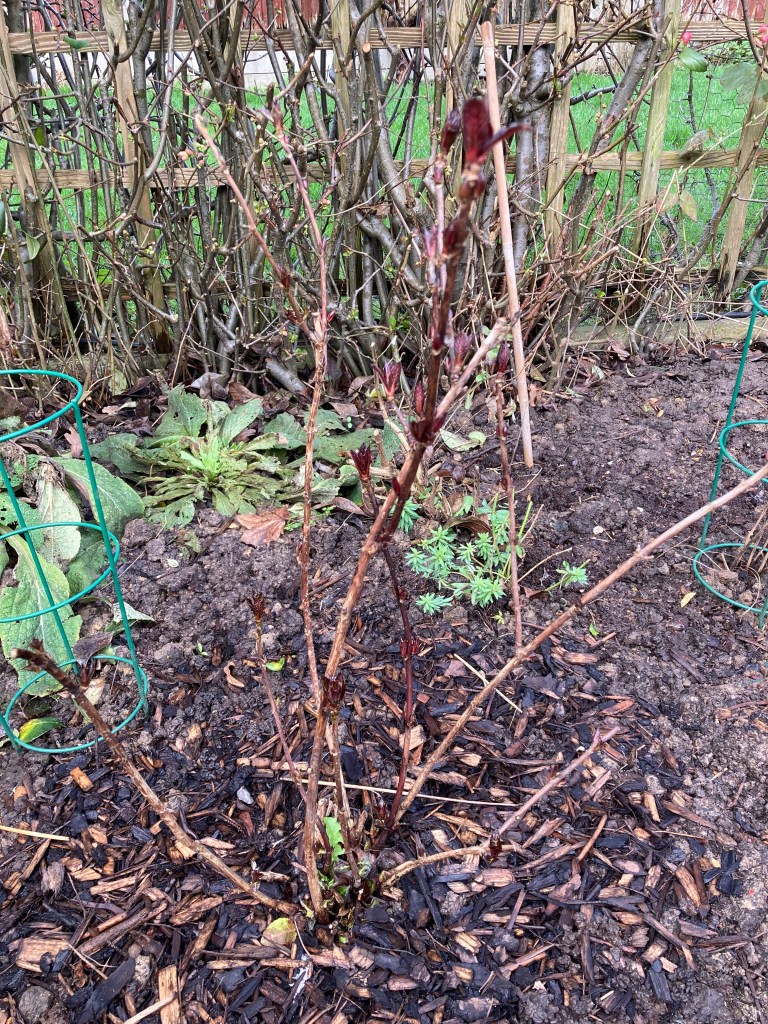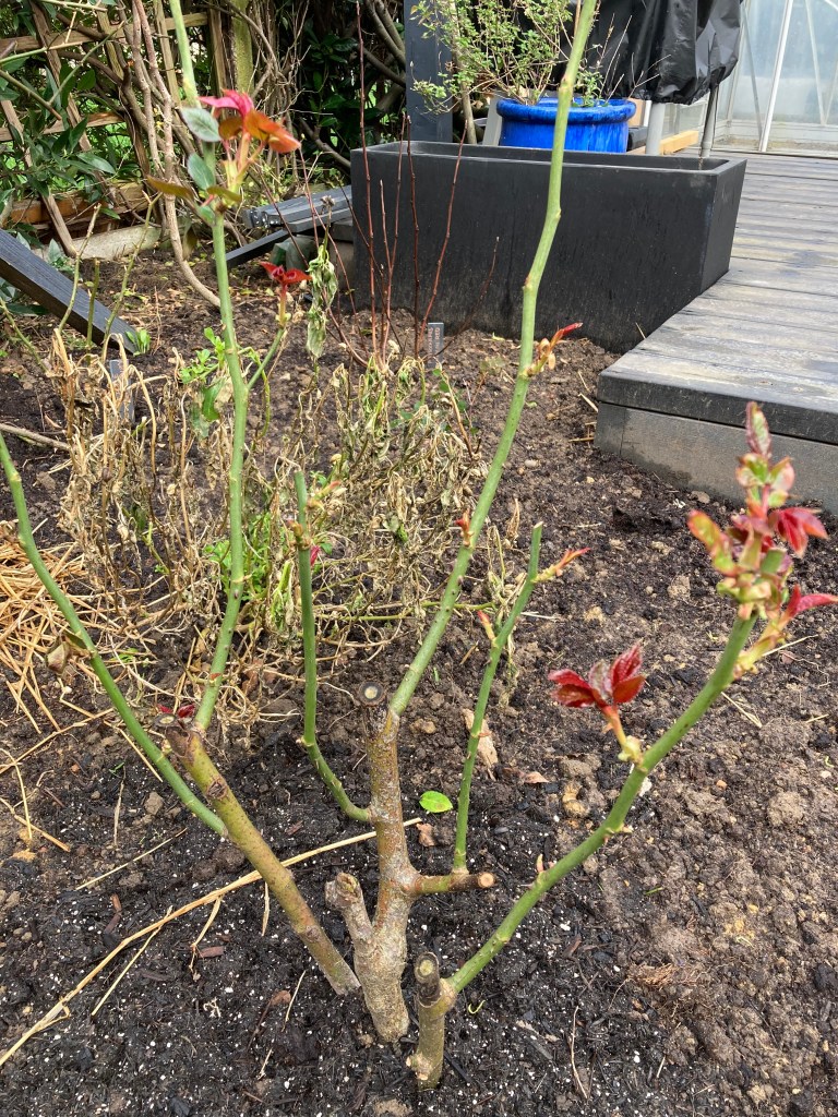 5. Chandos Beauty rose – The original plan was to call time on the two bushes I’d transplanted into the front garden from the plot last year. The afternoon sun seemed too hot for them and both bushes looked miserable. I purchased two shrub roses, reputed to be much tougher ‘Charles Austin’ to replace them. When I lifted one of the beauties, I noticed strong growth from the main stems so have re-thought the plan. One is in the south herbaceous border where it will get sun for most of the day and I have the other in situ in the front to monitor progress this year. I’m holding off pruning for a few more weeks. The Charles Austin shrub roses are currently in pots and will go in the front garden next week.