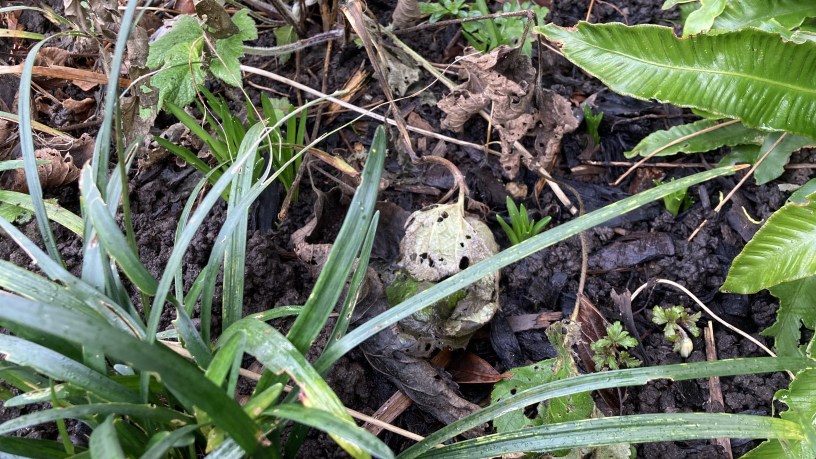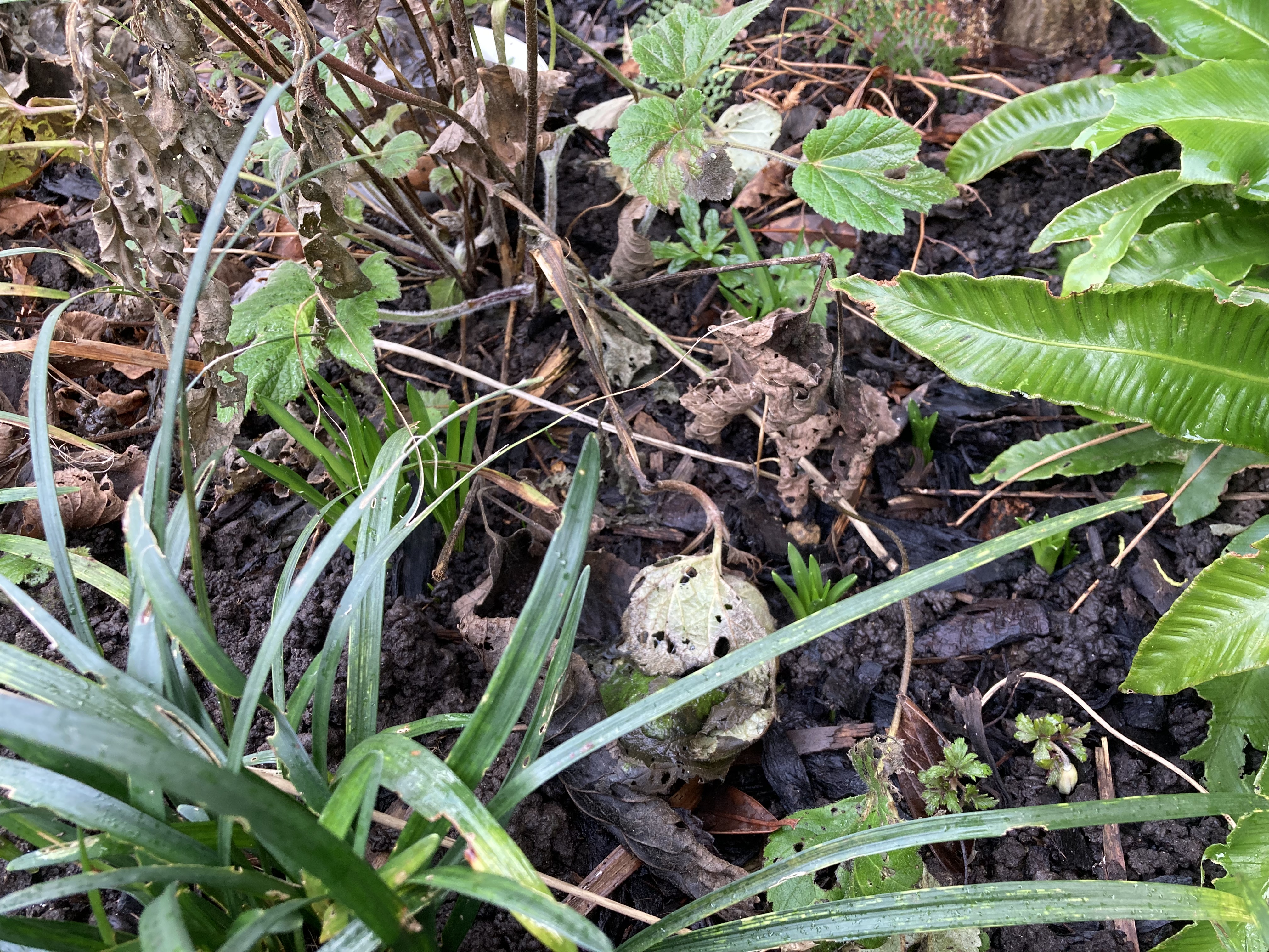 - Eaten – the slimy munchers have woken up and polished off what was a promising green shoot of pyrethrum. It also seems they have been at other shoots before they had time to unfurl. Nematodes are on order.