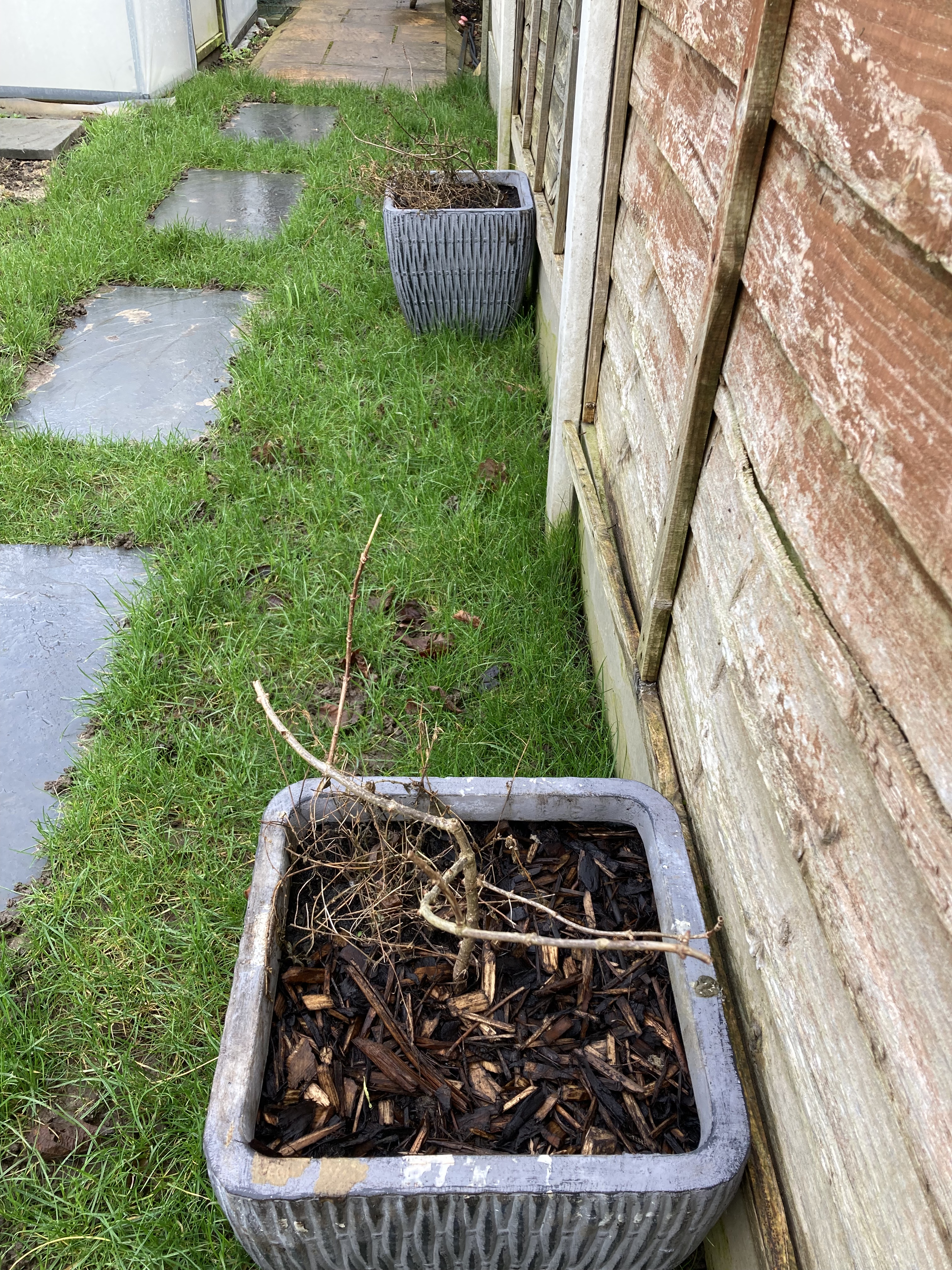 2. Sarcophagus bed – topped up with soil and compost. The jasmine trachelospermum is looking much happier. I re-homed the hydrangea (one of the lost label cohort) and have a climbing rose ‘Heaven scent’ to add. No idea why floribunda Champagne has decided to grow at an angle.