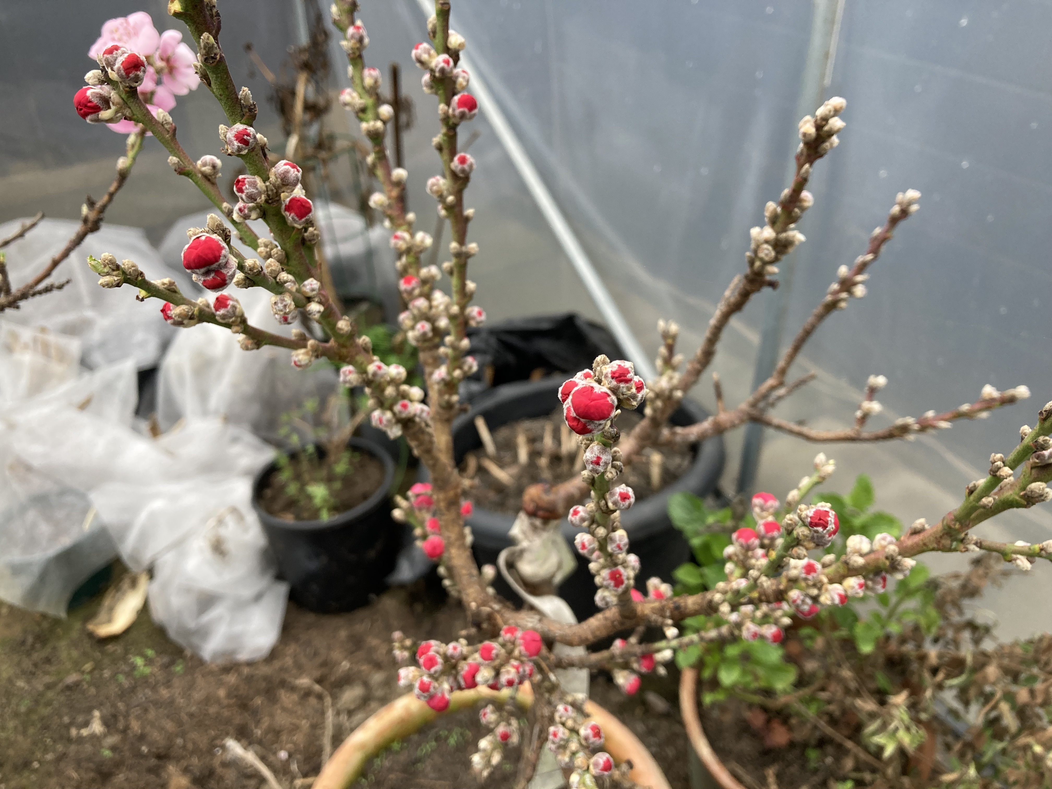 I thought this peach tree had succumbed to the heat and too little water in 2022 but it revived last year and so it made the journey to the new house in the front foot well! Both trees spent most of last year outside, coming inside in November so it will be interesting to see how they are affected by leaf curl.