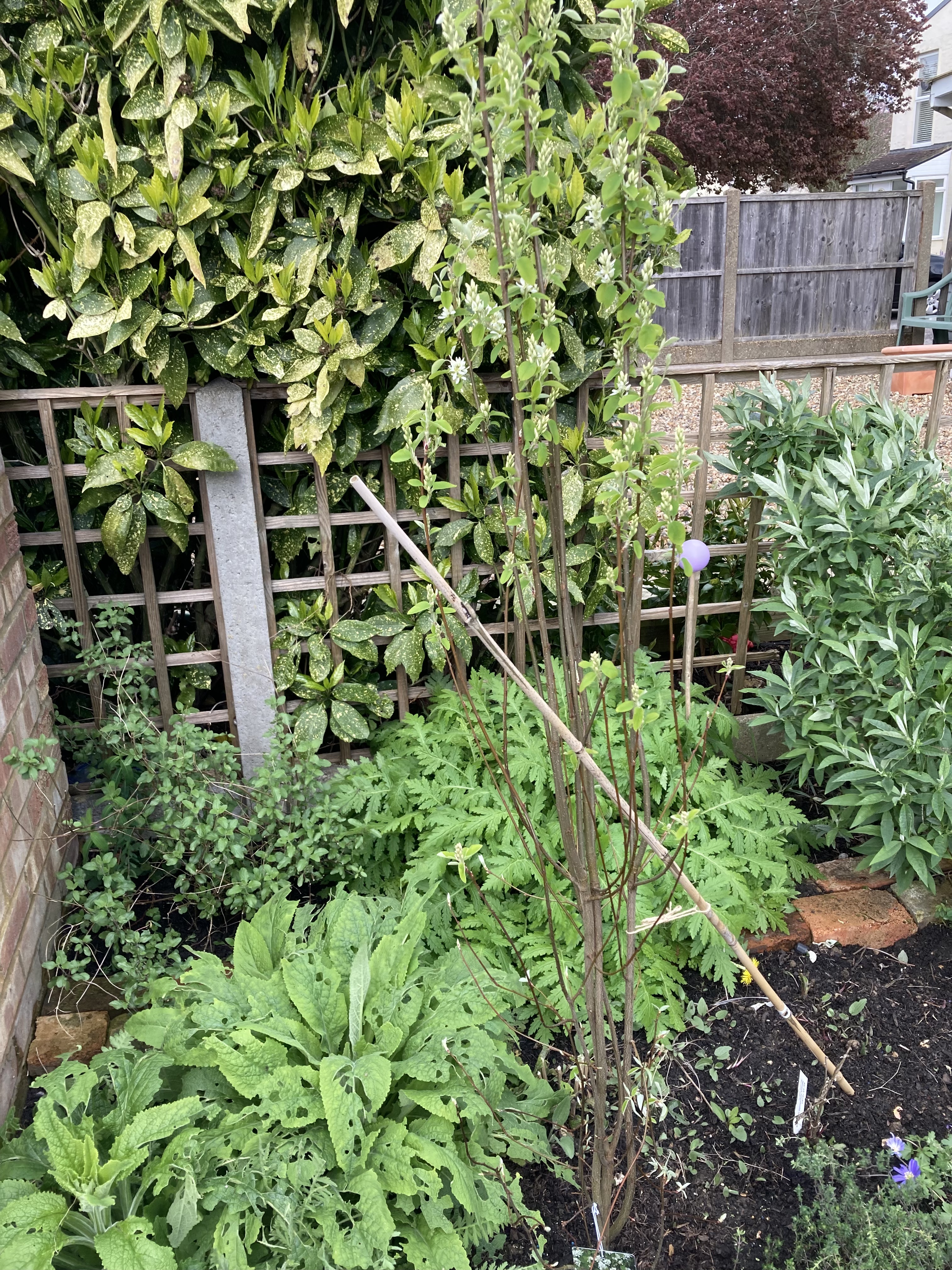 3. Sambucus nigra ‘Black Lace’ This did well last year. One branch had a growth spurt, I’ve trimmed it back a little, hoping the rest will catch up, otherwise there will be more trimming.