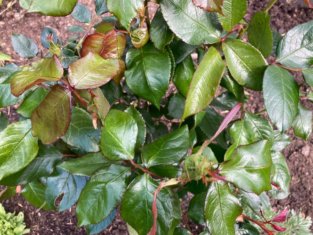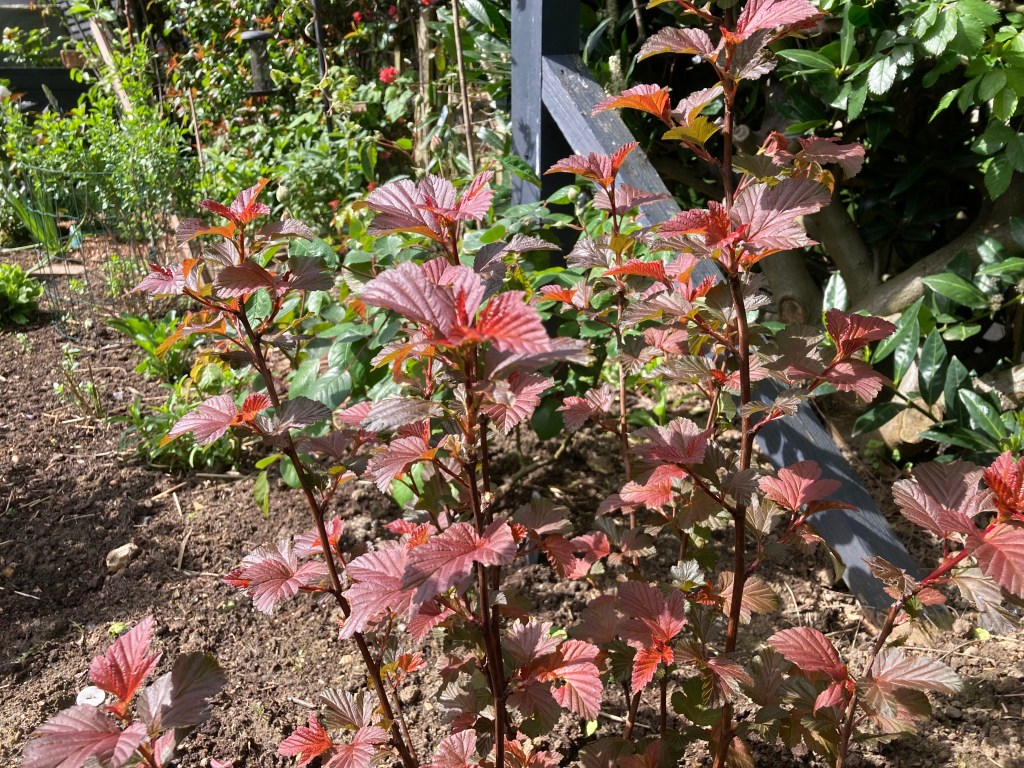 6. Leaf colour – The garden is mostly green at present but the colour palette, along with shape, sheen and texture has plenty to keep me interested, while I’m waiting for the flowers. The phystocarpus ‘Lady in Red’ is living up to its name, while the rose Chandos Beauty looks in the best of health