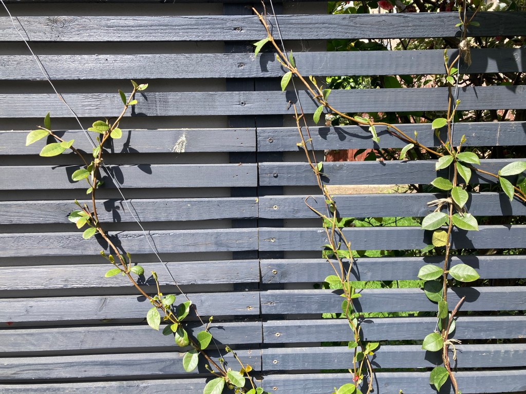 2. Wisteria – I know it’s a climber but deserves its own heading. I built the pergola so it has something to climb over. This is its second year and I’m happy for it to put energy into twining along the wires and up and over the pergola ‘roof’. This first photo reminds me of birds perching – you may need to squint to see that! The second photo shows the bedroom and bathroom windows I want to obscure.