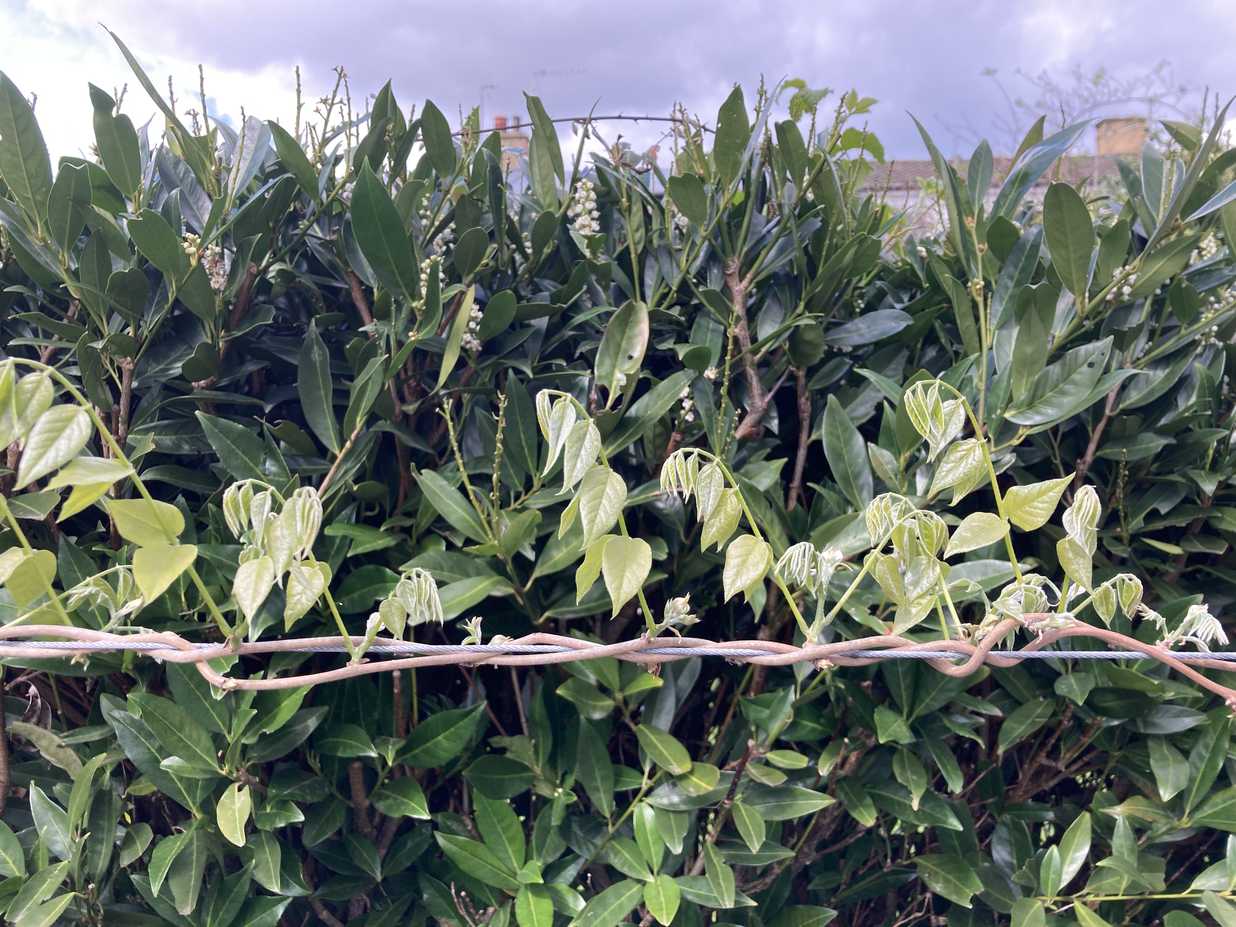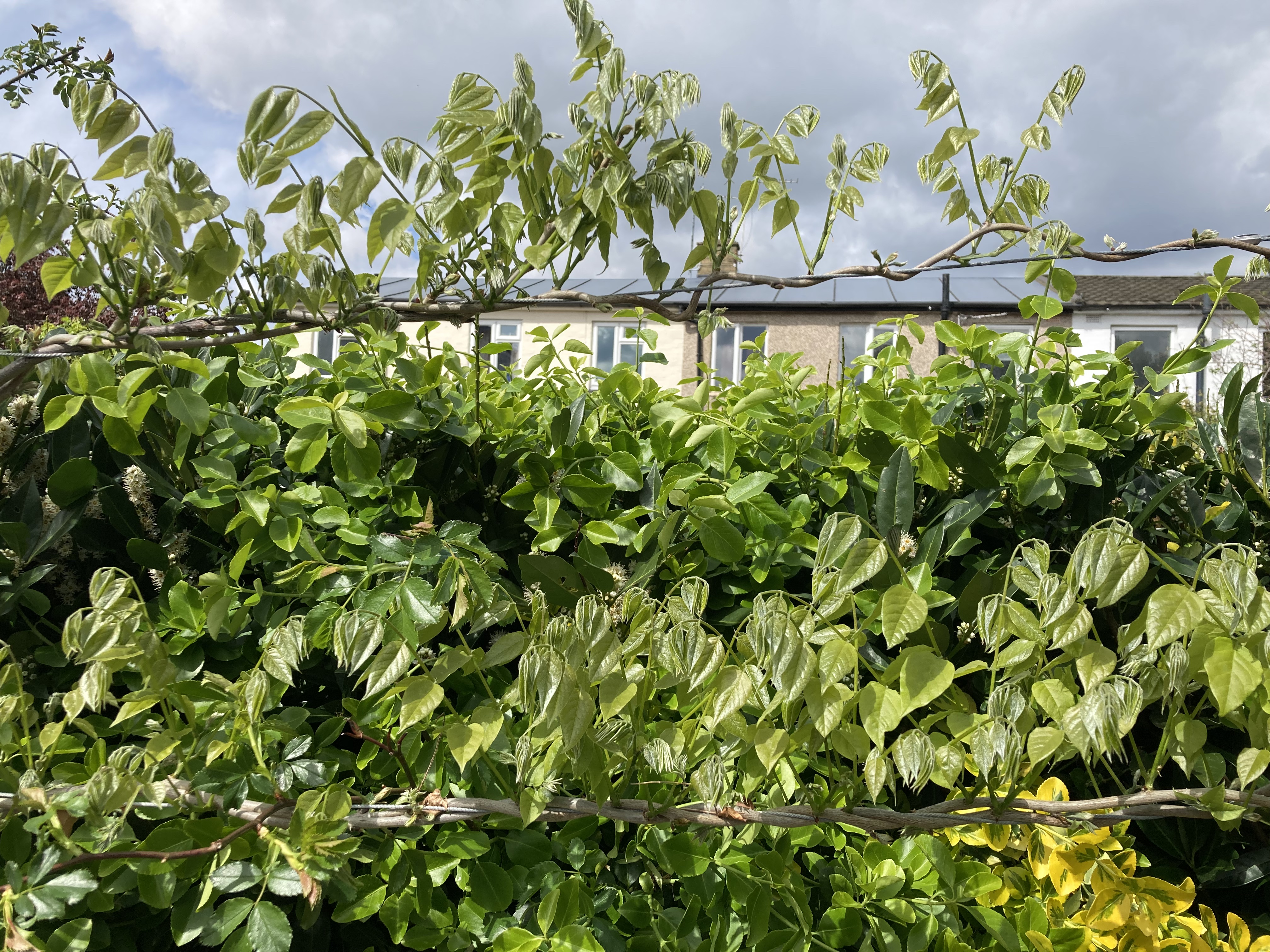 - Climbers – The trachelospermum jasminoides is putting on growth, hopefully now I’ve worked out the optimum watering (a can every other day if it doesn’t rain) she will keep her leaves and work on covering more of the fence with scented loveliness. The clematis is really putting effort into growing up and through the pittisporum. Finally, the rambling rose is reaching for the sky, it provides a bouncy perch for the parakeets