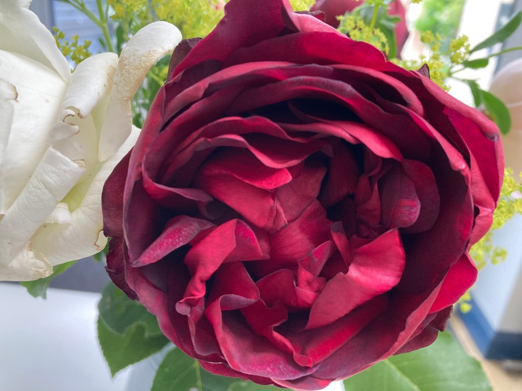 How lovely to have a rose walk on your allotment, especially with the extra space I assume you have got. Is it nearer where you live? My Grannie gave me (as a child) a book about the story of the ‘Peace’ rose, which involved the Meilland family, so my ears pricked up at the mention of Papa Meilland. Such beautiful roses today, Sharon, and with more alchemilla than I used it really sets them off