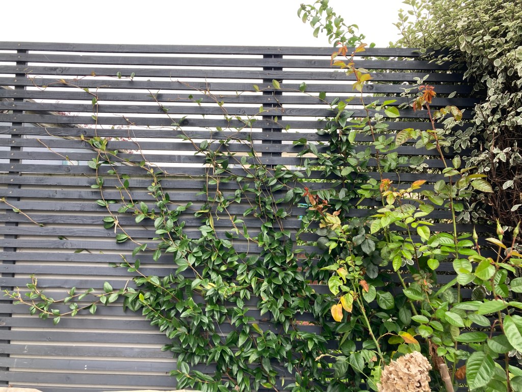 - Sarcophagus bed – The jasminoides trachelsophermum continues to grow very well and the fence is beginning to look as I’d imagined. I must practice patience (ha!)