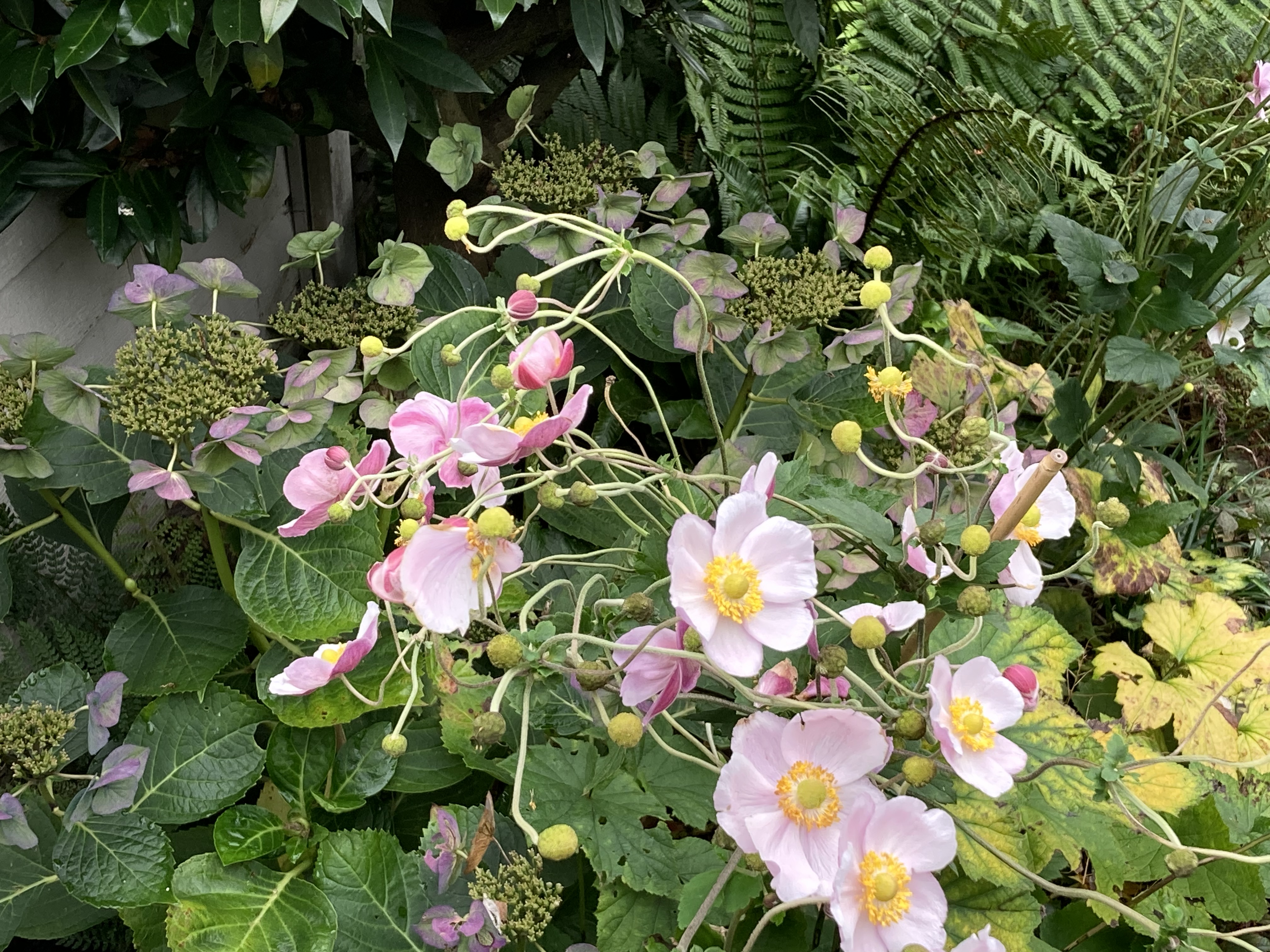 3. North border – This border needs a little editing. I think the thalictrum would prefer a little more sun so that will move to the herbaceous border. At the other end the blue hydrangea and japanese anemome is a good combination, better if I remember to get in early with supports for the anemome next year.
