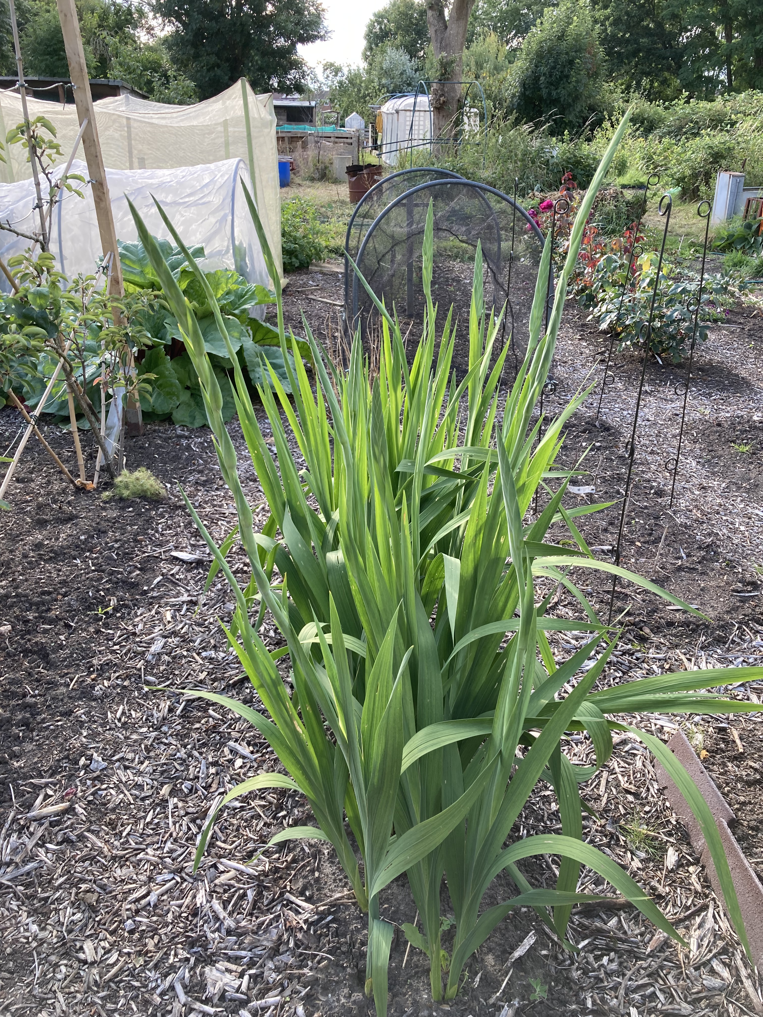 I don’t have any photos of the rhubarb growing in 2024 but it did so well that I picked a few stems from the largest of the plants. This is the only shot I can find is this one, one huge plant in the background to the left spilling over the path in July.
