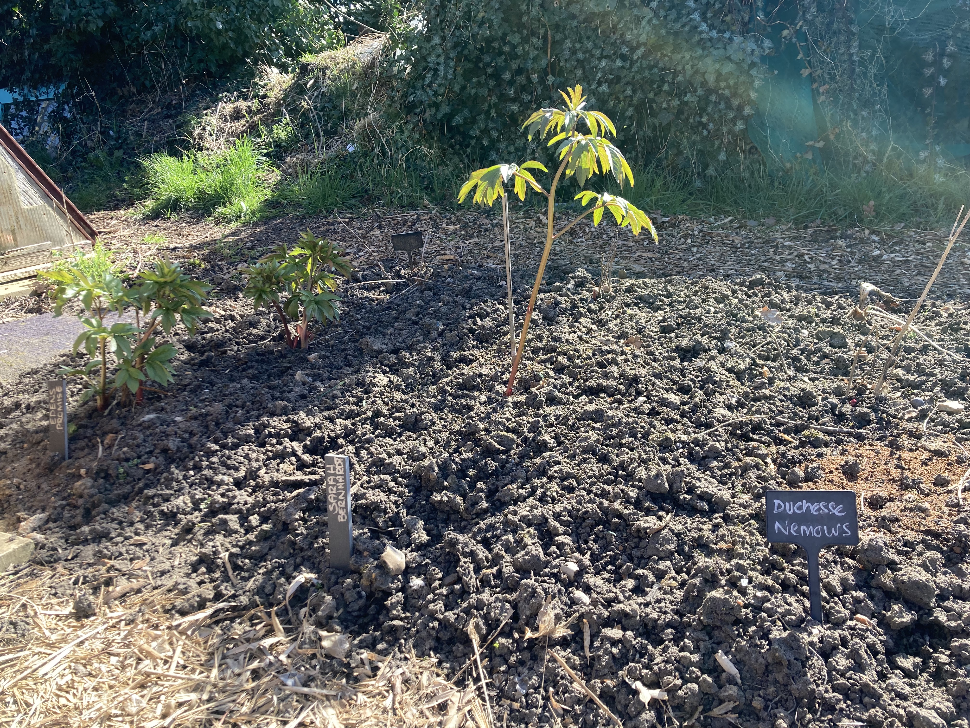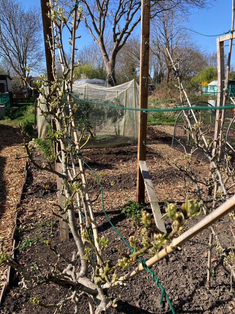 Back in July I was upset at the lack of progress with autumn raspberries. It’s still slow with most of these new Joan Js doing a good impersonation of dead sticks. Further along the same row are the summer raspberries, Summer Cascade which seem set on plot domination. They have set a nearly straight line in the bed I had intended for the autumn raspberries – with such precision I didn’t have the heart to pull them out. Please send your raspberry recipes!