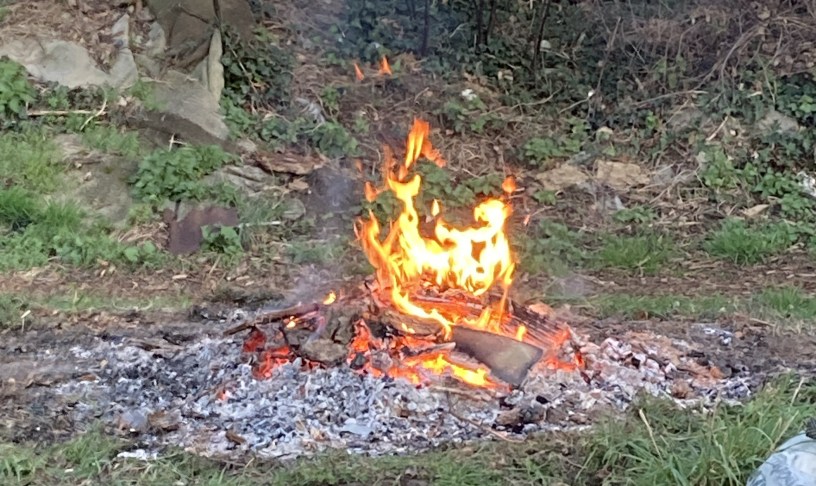 and finally to make sense of the cover photo, the junk pile is no more, or rather it is ashes. It was a mum and son Friday evening to make the fire and eat chips while it burned down. I emptied the wooden crate of the assorted grot that had been deposited by numerous plot holders and made a neat pile at the back of the car park. When the long promised council skip makes an appearance it will be a short job to fill it up. The space now makes it possible for me to finish digging this patch and plan my new flower ‘farm’. I’ve covered it with a taurpaulin in the hope of preventing it setting like concrete in the sun.