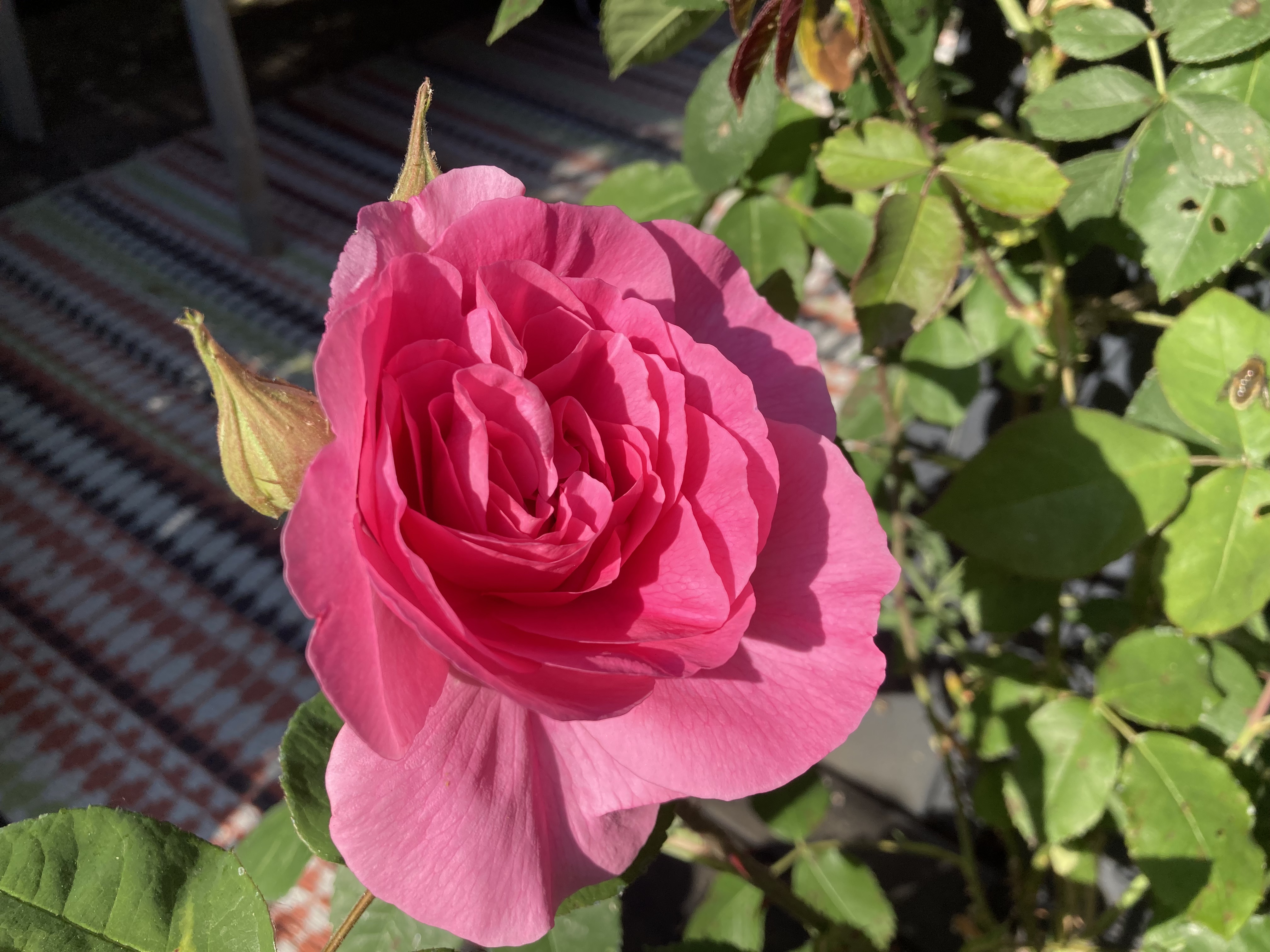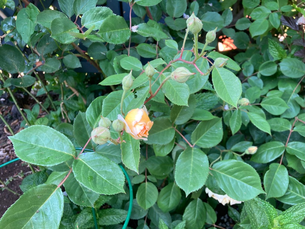 Finally and saving the best for last is Gertrude Jekyll. I’m training her as a climber, although given her spiky spines, the pergola post may not be the best place but I’m happy to sit in the shade on the patio and admire her.