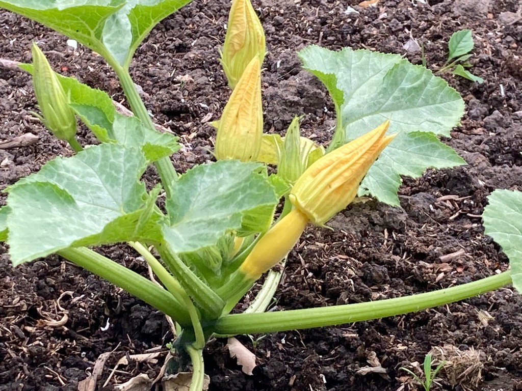 Your Rhubarb is looking good and flowers on your Courgettes too… Excellent….