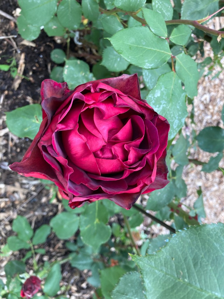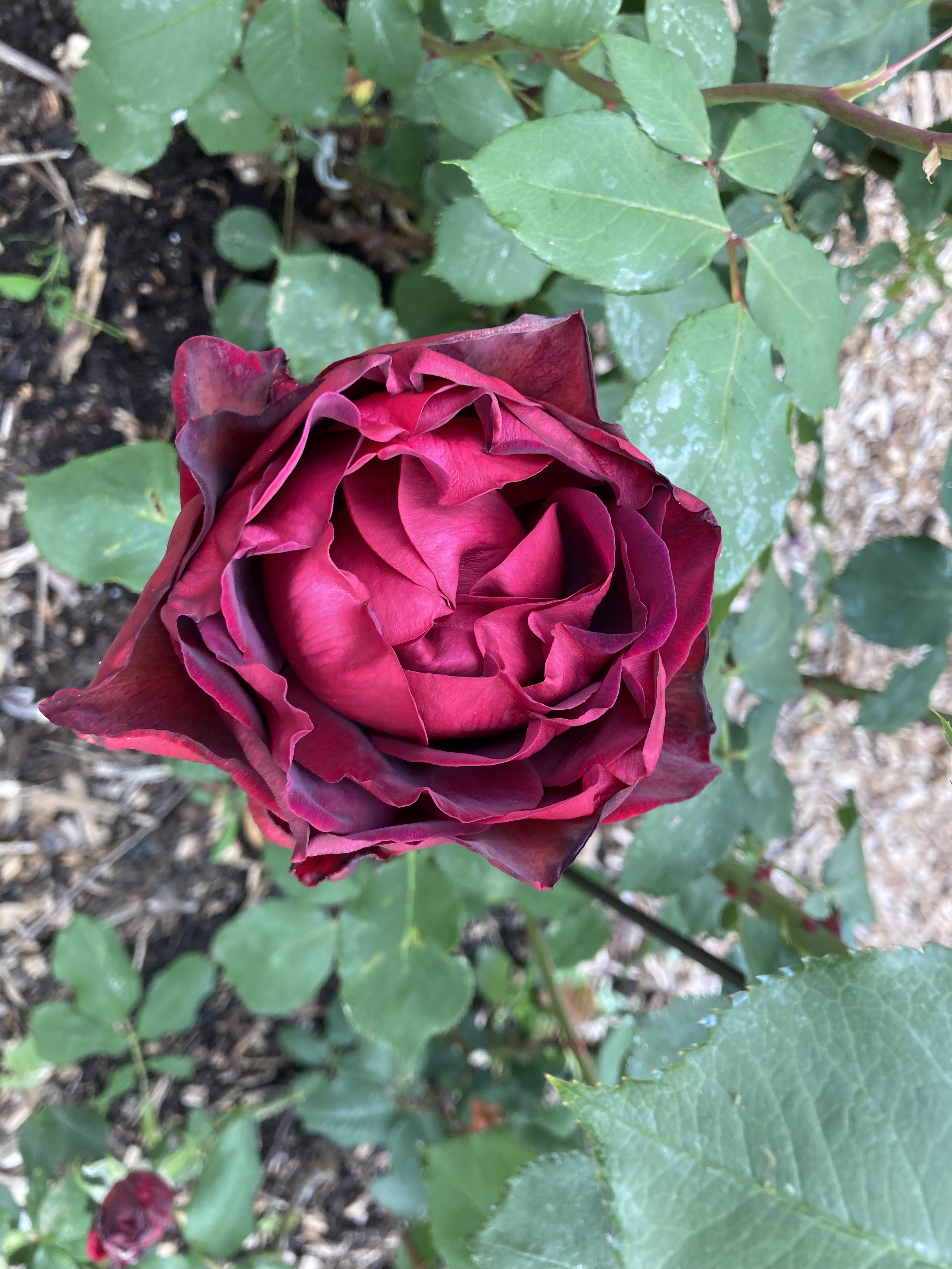 The rose walk is in it’s first flush. The dark roses need help to fully open the buds but when they do it’s worth it. This is Papa Meilland.