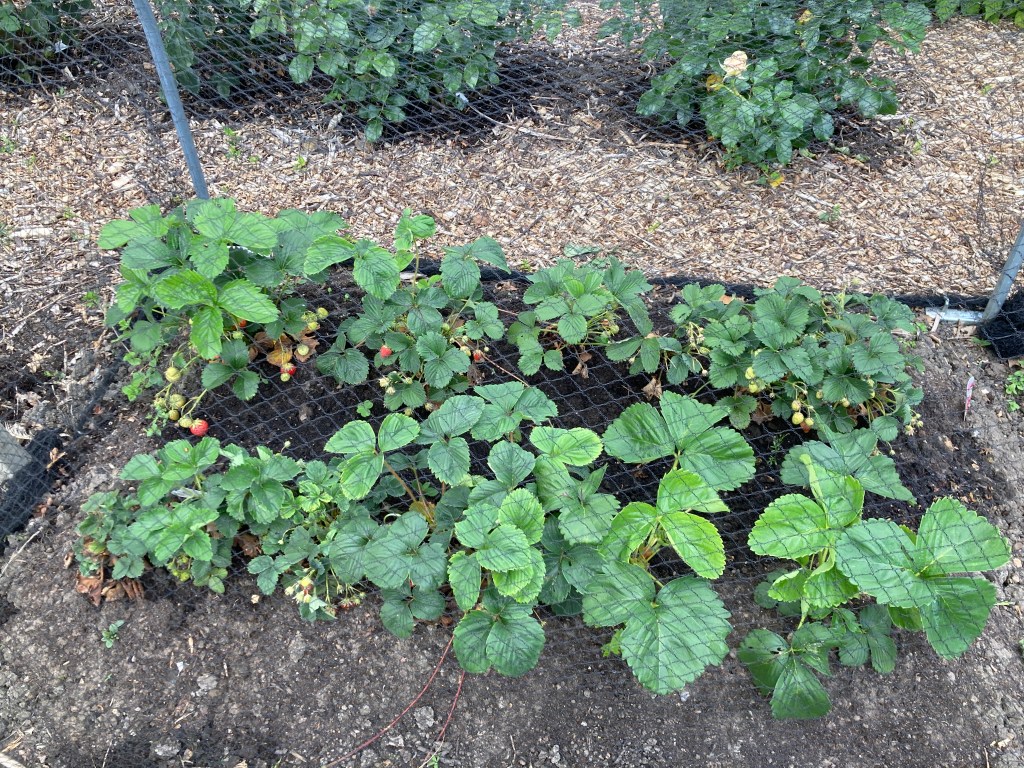 I made a rookie error with the strawberries. I planted them into mounds, as if I was on heavy clay but I’m not anymore – it’s free-draining sandy clay and they are suffering as a result. I may get a few berries. I’m hoping that a heartfelt apology and a new bed will result in bowls of strawberries next year…