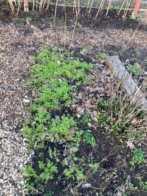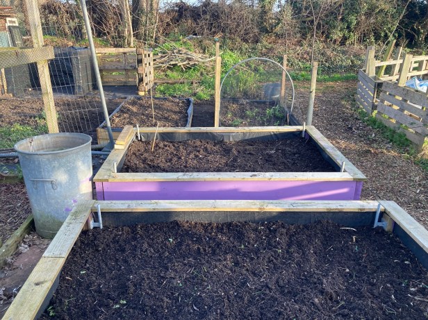 So far, it’s been a good start to the year, the beds have been mulched and the woodchip paths renewed. I’m hopeful this work will build some drought resilience. The soil’s free-draining nature was clear as I moved it to the new raised bed and levelled the area.