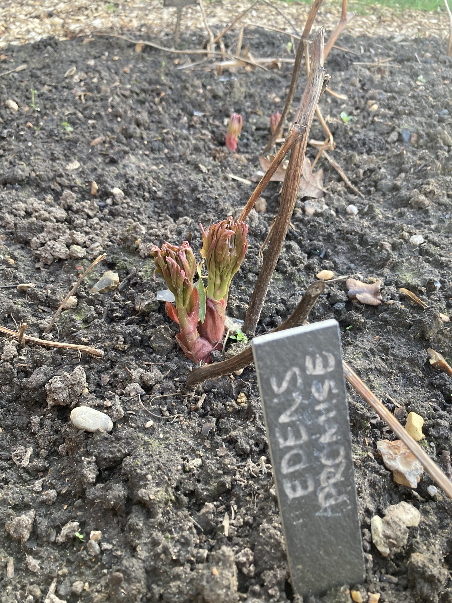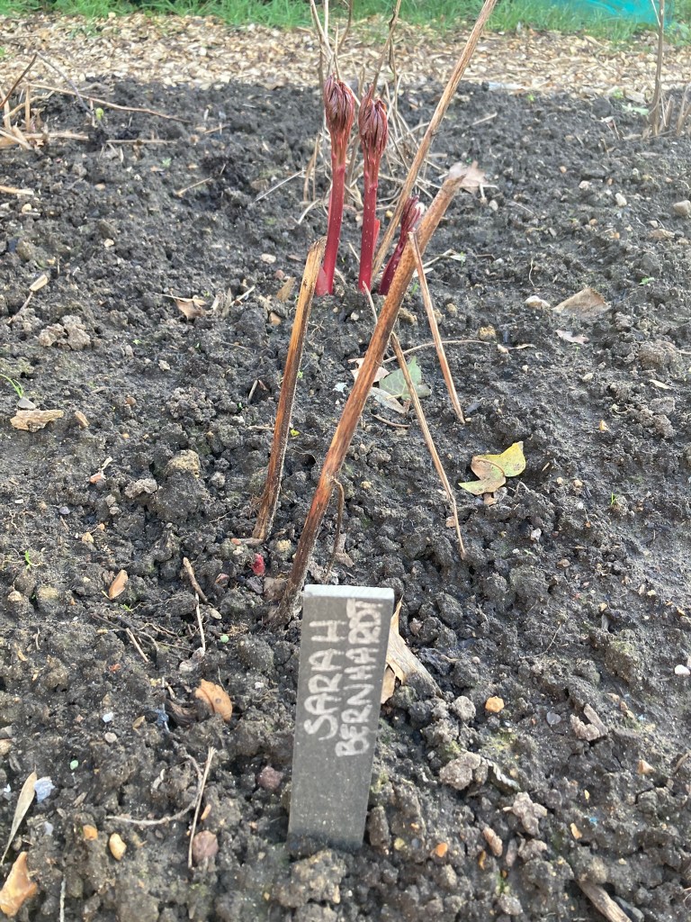 The peony bed is also showing promising signs of life, particularly Sarah Bernhardt and Eden’s Promise. I can spy hints of red buds just pushing through the soil for the rest.