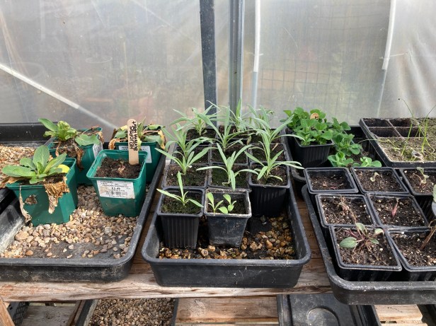 6. Greenhouse – it’s mostly propagation at present. The cornflowers were self-sown around the base of a perennial lobelia, currently over-wintering in the polytunnel. Rubeckia Goldsturm really suffered last summer; I’ve lifted and divided one plant, hoping for rejuvenation!