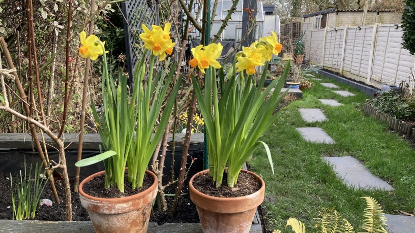 2. Peonies – The rescue tree peony has produced its annual bud. I did promise it a new pot and fresh compost – I’ll get to that this year. In the yellow pot, I think is Coral Charm. I don’t expect that to flower for a few more years.