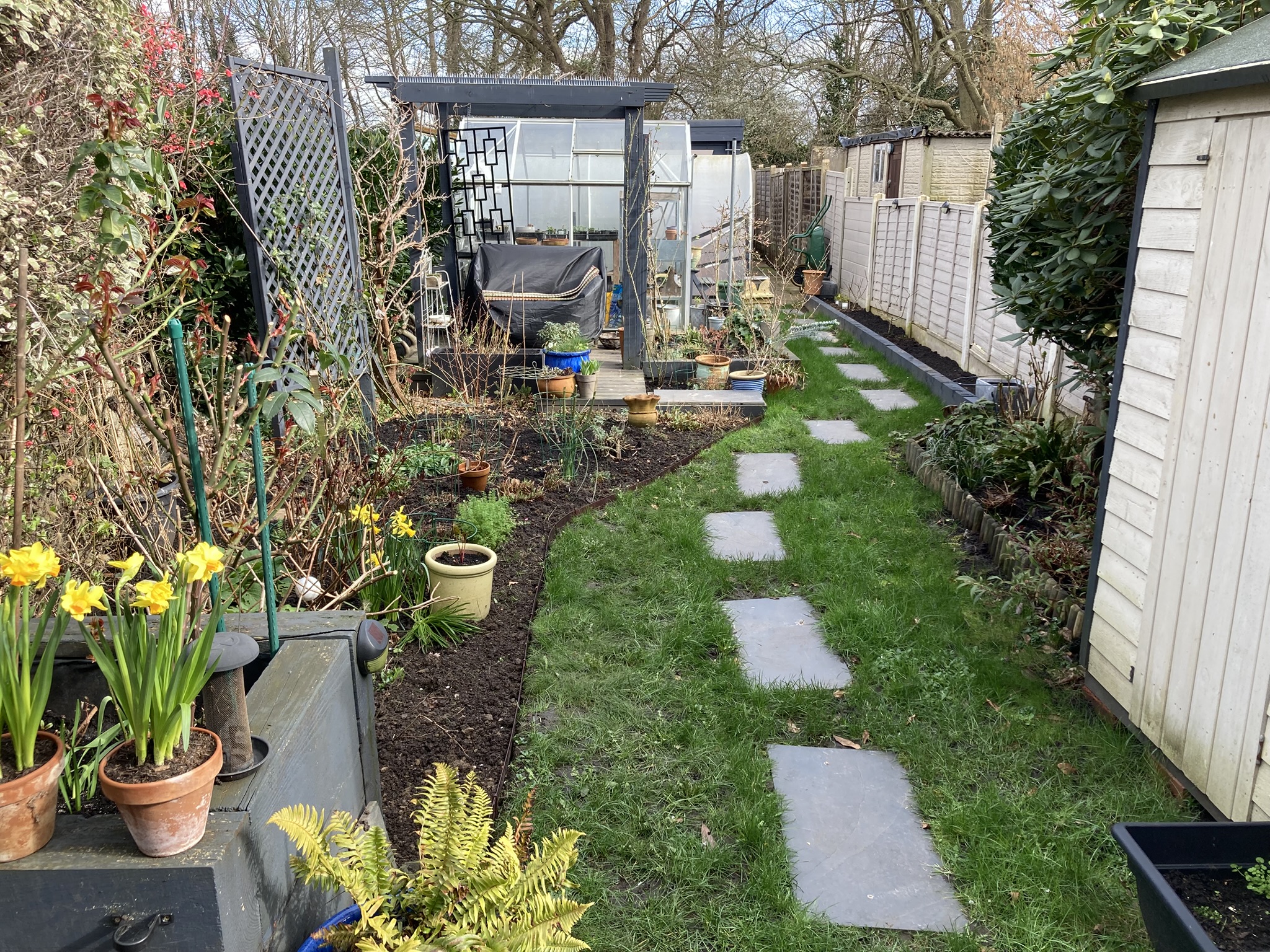 - Straight edges – I’ve installed a metal edge to separate the lawn and the border – there has also been a tiny border extension, oops!