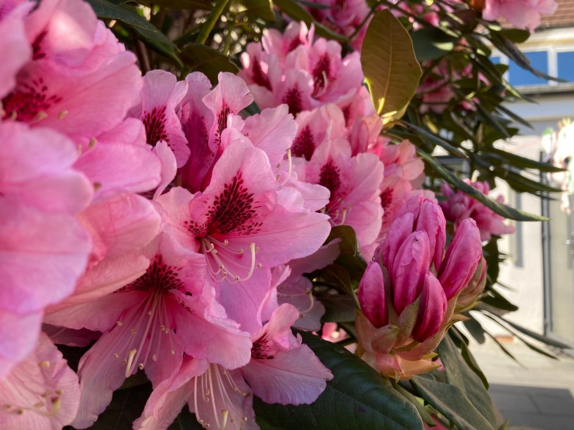 Hello again. The gardens, front and back look to be reaching peak lushness. The wisteria is blooming prolifically and the scent is gorgeous. Pat Butcher rhodendron is in full bloom and she has the header shot this week. I have an assignment to write (who said procrastinator?), so I’ll be quick.