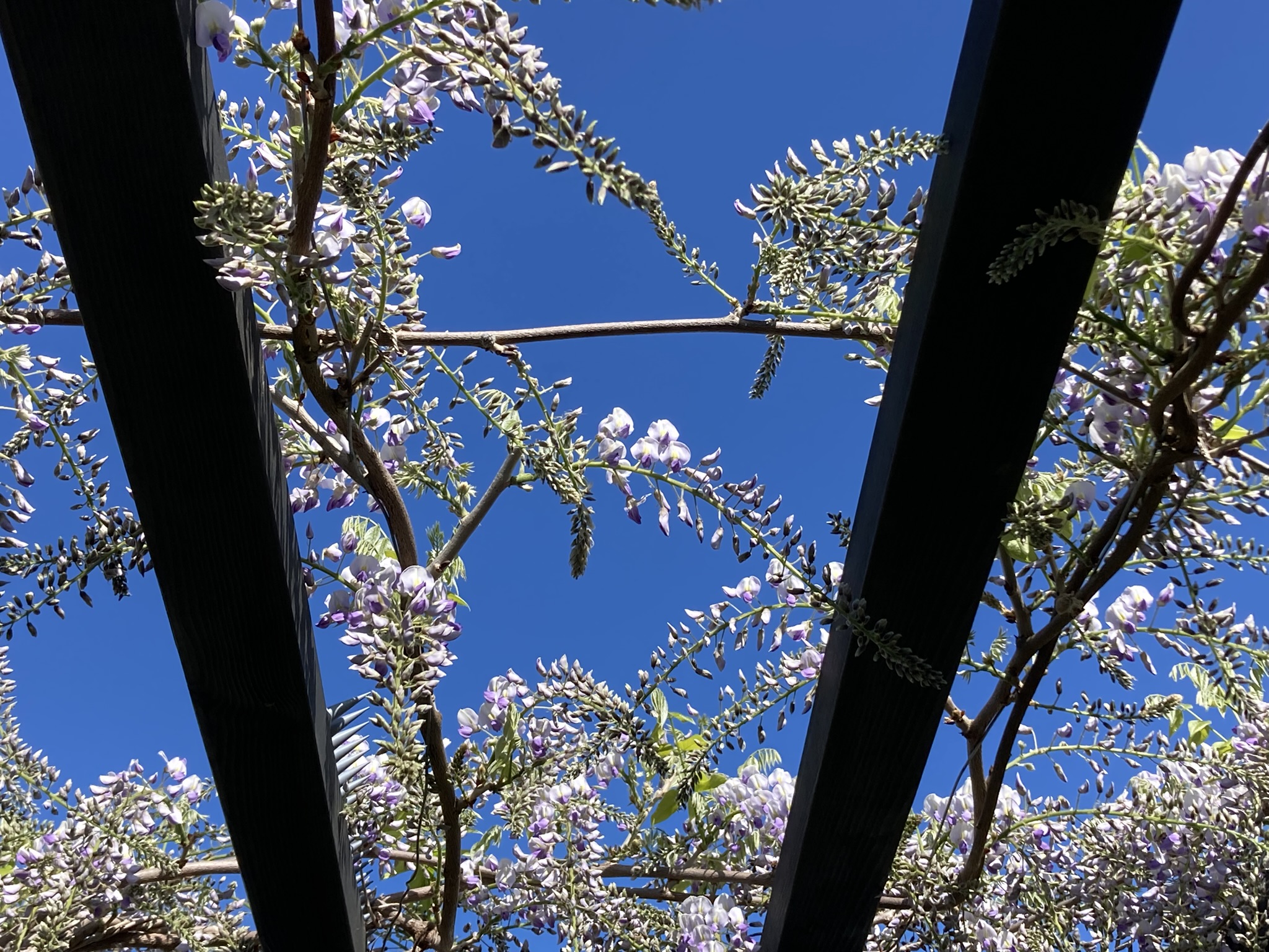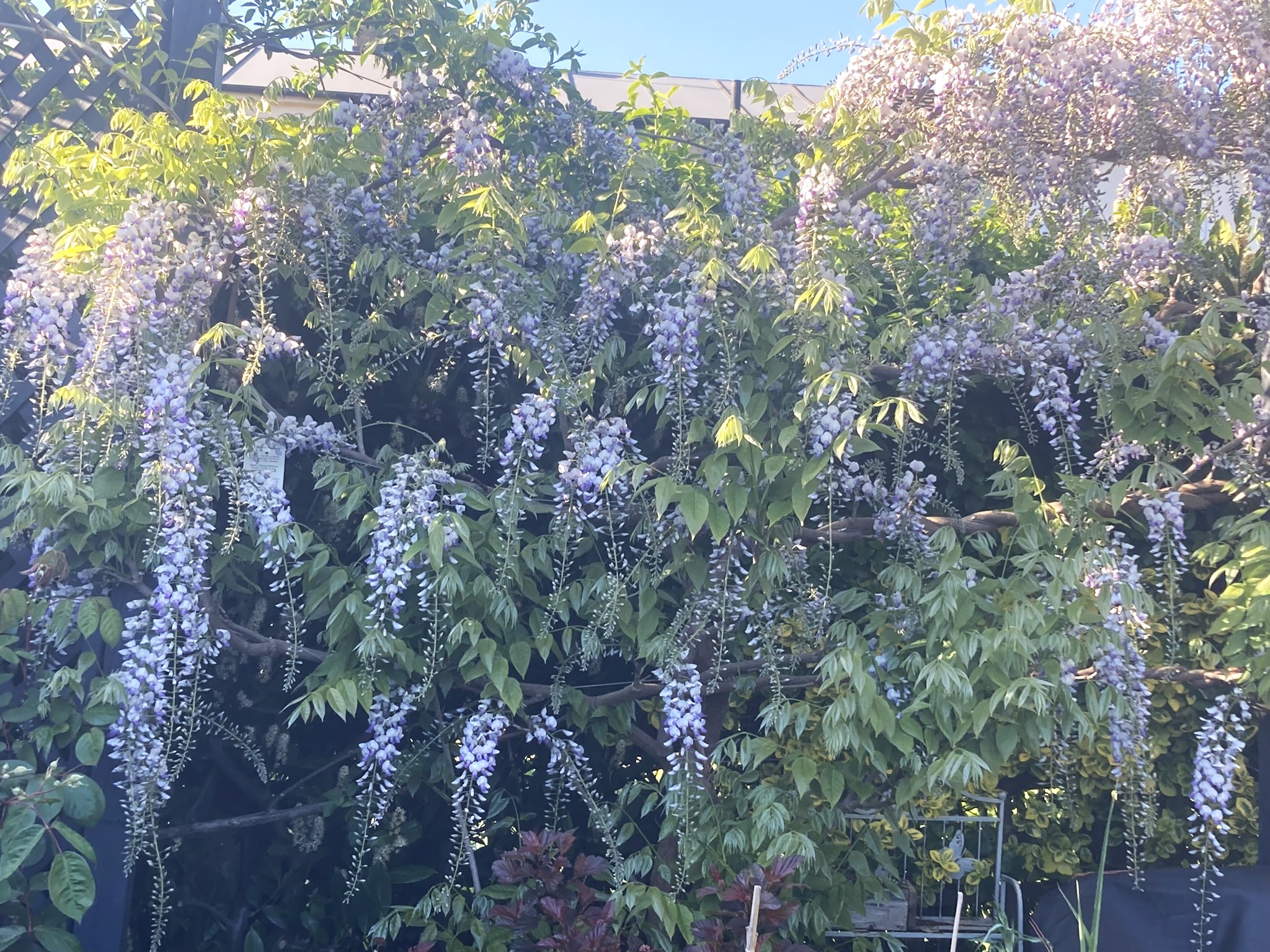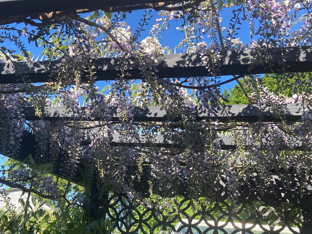 - Wisteria ‘Prolific’ – I’m really very pleased with how this has covered the pergola, the racemes dripping from the rafters. The growth has been astonishing. These two photos are a week apart. It really does prove “right plant, right place”.