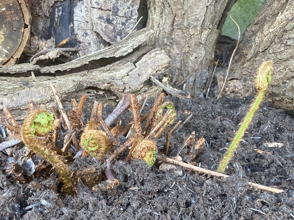 4. North border – I topped up the ericaceous compost, gave it a good watering and have been rewarded with new leaves unfurling.
